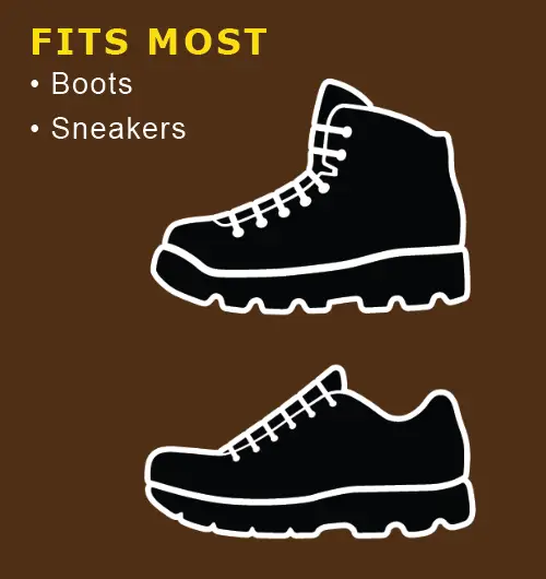 They are completely adjustable to fit most boots/sneakers and can be put on or removed anytime without taking off your footwear. BANDITS™ are made of breathable lightweight material that’s designed for all day use.